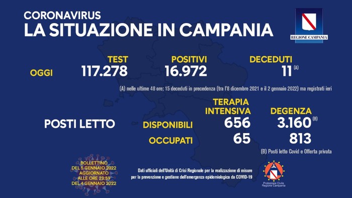 Aumentano i nuovi positivi e cresce anche la curva dei contagi da Coronavirus in Campania. Numeri alla mano, oggi il virus fa registrare 16.972 positivi su 117.278 tamponi esaminati, 4.914 in più di ieri con 769 test processati in più. In percentuale, significa che è positivo il 14.47% dei test, quattro punti percentuali in più di ieri quando il tasso di positività era al 10,21%.