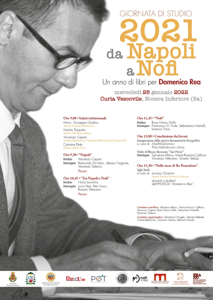 A partire dalle ore 9 la curia ospiterà una giornata di studi sul tema “2021, da Napoli a Nofi. Un anno di libri per Domenico Rea”, in omaggio al grande protagonista della letteratura italiana contemporanea che ha vissuto l’infanzia e la giovinezza a Nocera Inferiore. Una data emblematica, perché è quella del giorno della morte di Domenico Rea, scomparso a Napoli il 26 gennaio 1994.