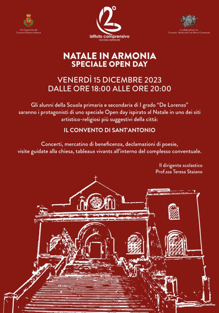 È il convento di Sant’Antonio il monumento adottato dagli studenti e dai docenti del Secondo istituto comprensivo di Nocera Inferiore. Dopo settimane di lavoro, sopralluoghi, prove il chiostro venerdì 15 dicembre, dalle ore 18 alle ore 20, si trasformerà in un accogliente villaggio con il mercatino della solidarietà.