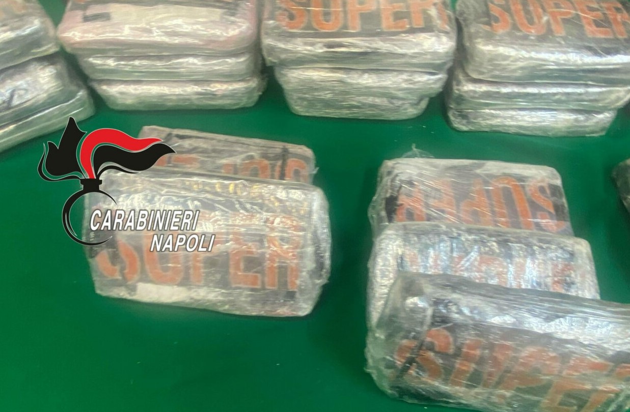 La droga, 36 chilogrammi di cocaina purissima, è stata trovata dai carabinieri lungo la stazione ferroviaria di Angri