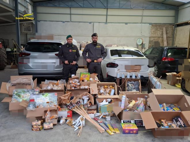 Quasi una tonnellata di fuochi pirotecnici custoditi all’interno di un magazzino a Castel San Giorgio. A scoprire i botti illegali è stata la Guardia di Finanza di Salerno nell’ambito di un’attività di servizio in materia di prevenzione e repressione della commercializzazione illegale di materiale esplodente. Tutto è partito dalle indagini condotte dai finanzieri della compagnia di Cava de’ Tirreni e di Scafati che hanno individuato e sequestrato gli artifici pirotecnici, conservati in maniera abusiva, per un totale di massa esplosiva di circa 140 chili.