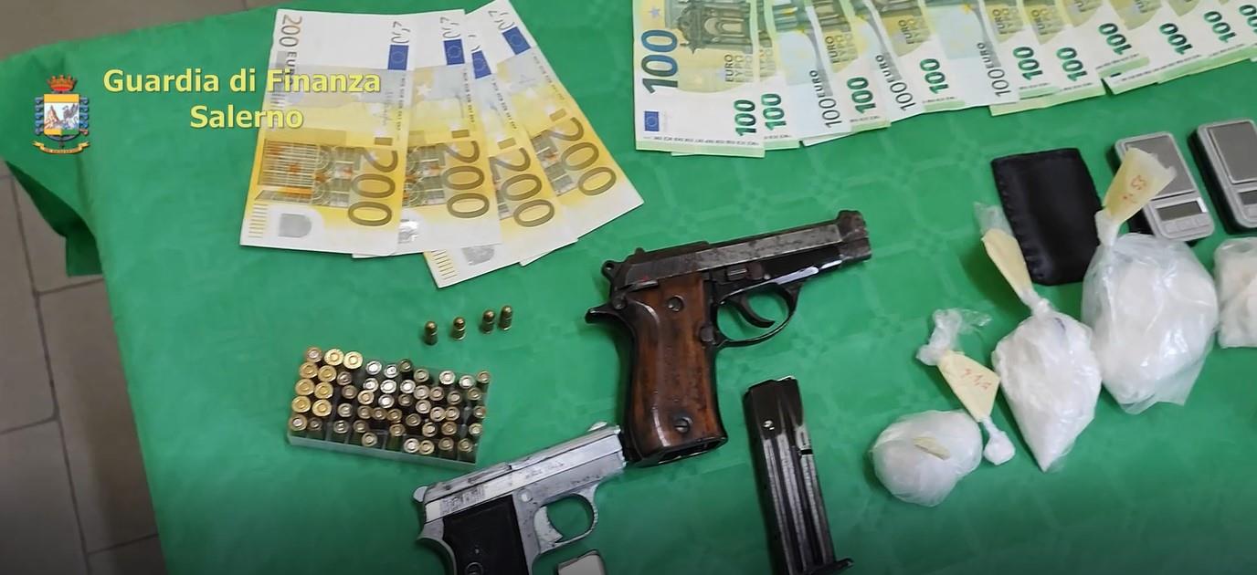 Nel corso della perquisizione, i Finanzieri hanno inoltre individuato e sottoposto a sequestro due cellulari, una pistola Beretta 81 calibro 7,65 parabellum e una Titan calibro 25, con tanto di cartucce, illegalmente detenute e con la matricola abrasa. Su disposizione della Procura di Nocera Inferiore, il 32enne, arrestato per spaccio di sostanze stupefacenti e detenzione di armi clandestine, è stato portato nel carcere napoletano di Poggioreale