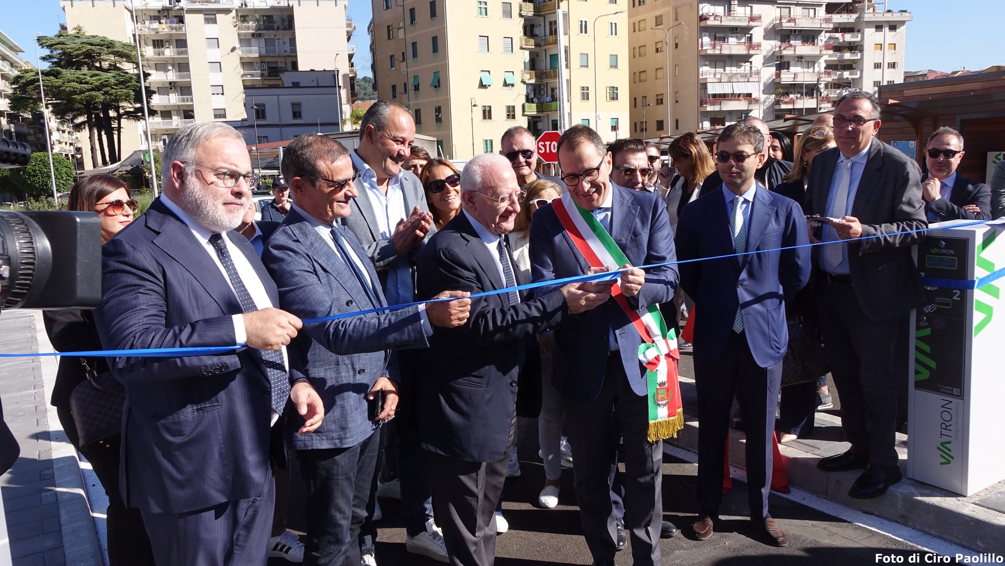 Un parcheggio per 102 auto, un terminal bus, sei corsie per altrettante direzioni tra cui l’ingresso allo svincolo dell’autostrada A3. È lo snodo viario con annesso parcheggio che questa mattina il presidente della Regione Campania, Vincenzo De Luca, ha inaugurato a Nocera Inferiore. Ad accoglierlo il sindaco Paolo De Maio, insieme hanno tagliato il nastro di un’opera attesa da diversi anni. Nella foto di gruppo il presidente della Provincia di Salerno, Franco Alfieri e il consigliere regionale con delega ai trasporti Luca Cascone.