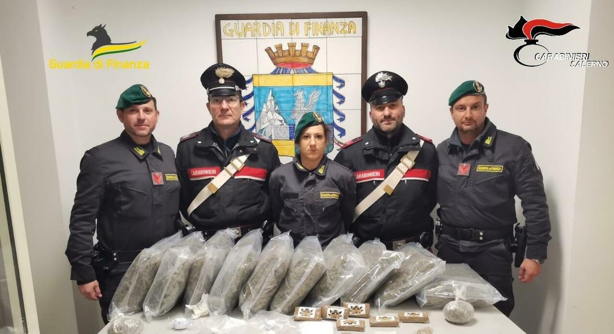 Maxisequestro di droga a Nocera Superiore. L’operazione è stata portata a termine dalla Guardia di Finanza e dai carabinieri nell’ambito di un servizio congiunto. Sotto sequestro sono finiti circa dodici chili di marijuana, 700 grammi di cocaina pura ed altrettanti di hashish, nonché diverse dosi di crack, nove proiettili di diverso calibro, 900 euro in contanti ed un’auto utilizzata per lo spaccio.