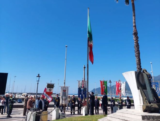 La cerimonia si è spostata poi al Monumento del Marinaio dove si è svolta l’alzabandiera solenne e la deposizione della corona d’alloro dell’Associazione Nazionale Marinai d’Italia, proseguendo verso il lungomare cittadino per poi terminare presso il Palazzo della Provincia, con la deposizione della corona d’alloro alla lapide delle Medaglie d’Oro della Resistenza.