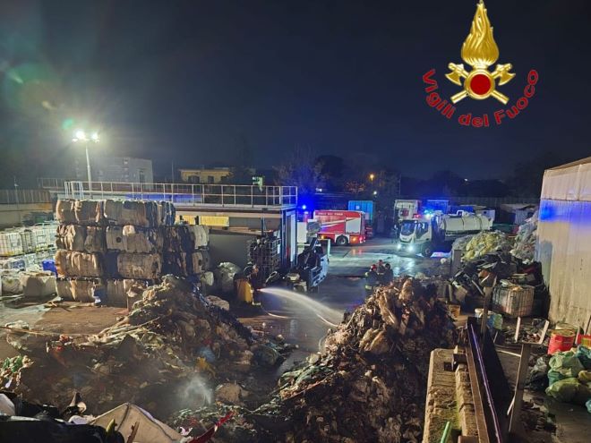 Incendio poco dopo le 5 di questa mattina all’interno di un’azienda che ricicla rifiuti industriali a Sant’Egidio del Monte Albino