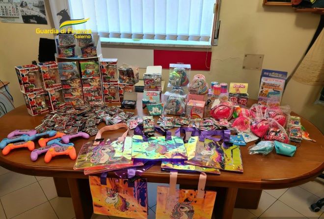 La Guardia di Finanza ha sequestrato a Nocera Superiore oltre 5 mila articoli contraffatti per bambini, denunciato un negoziante
