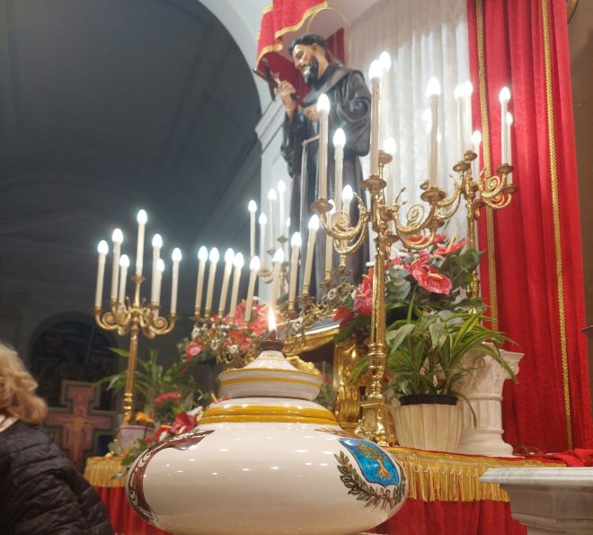 Durante la celebrazione si è ripetuto il tradizionale dono della lampada votiva, offerta dai sindaci di Nocera Superiore, Gennaro D’Acunzi, e di Nocera Inferiore, Paolo De Maio, Quest’anno la lucerna che arde ai piedi della statua di San Francesco ha un significato ancora più importante, è la “Lampada della Pace”. “Se ognuno di noi fosse attento ad accendere la lampada della pace senza distrarsi, allora sì che ci sarebbe la pace” ha sottolineato monsignor Giudice.