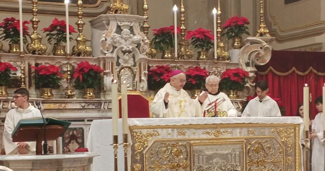 “La mangiatoia – ha aggiunto – è il luogo dove si avvicinano gli animali per mangiare. Gesù non ha una culla ma una mangiatoia, perché la vita per svilupparsi ha bisogno del pane. Questo bambino è la vita ma è anche il pane, pane vivo disceso dal cielo, il pane degli angeli. Dove mancano i bambini e dove manca il pane manca la vita, in un mondo che ha perso la via per Betlemme. Il terzo segno è rappresentato dalla schiera degli angeli che annunciano la lieta notizia e cantano ‘Gloria a Dio nell’alto dei cieli e pace agli uomini’. Pace che non ci sarà mai se non riconosciamo la gloria di Dio, non ci sarà mai pace nel nostro mondo fino a quando non accoglieremo il Bambino, principe della pace. Andiamo pellegrini a Betlemme verso la luce e, come i pastori, ritorniamo glorificando il Signore” ha così concluso il vescovo nell’omelia .