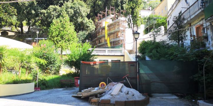 Un altro cantiere lumaca è in via Solimena all’interno della storica villa comunale. I lavori di riqualificazione, attesi da anni, il 9 agosto 2021 furono consegnati alla Mar.Sal Restauri di Napoli che per circa 800 mila euro avrebbe dovuto completarli entro aprile scorso. Non è andata proprio così. Il 28 febbraio scorso fu deciso di abbattere il maestoso cedro del Libano che dominava i giardini, <<era malato>>, riferirono dal Comune dopo l’intervento di uno specialista. Anche in questo caso ci furono cori di proteste. Intanto il cantiere è chiuso, i lavori sono sospesi. Se la zona arborea, compresi i viali e il tempietto in stile liberty, è stata in gran parte recuperata, l’imponente casa del custode è ancora cinta da ponteggi. Al momento non si conosce la data della riapertura del cantiere.