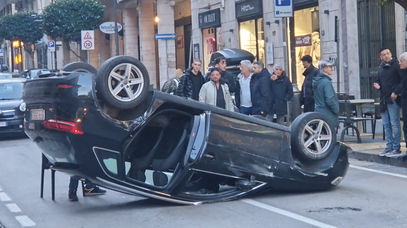 Spettacolare incidente stradale nel primo pomeriggio di oggi in via Barbarulo, una delle arterie centrali di Nocera Inferiore. Per cause ancora in corso di accertamento, un’Audi A3 si è ribaltata. Una Fiat Panda è rimasta coinvolta nell’incidente riportando lievi danni. Secondo una prima ricostruzione, il conducente dell’Audi avrebbe perso il controllo del veicolo.