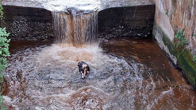 Quello che resta dell’animale è rimasto incastrato in un punto in cui il torrente degrada verso il basso ed è rimasto fermo anche a causa della scarsa corrente dell’acqua. Impossibile stabilire dove l’animale è stato gettato nel torrente. Probabilmente chi ha deciso di disfarsene ha approfittato della pioggia insistente della scorsa notte sperando che l’acqua trascinasse il più lontano possibile la carcassa.