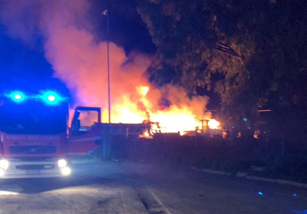L’incendio si è sviluppato nel piazzale utilizzato dall’azienda che per conto di Gori sta costruendo la rete fognaria dell’area industriale