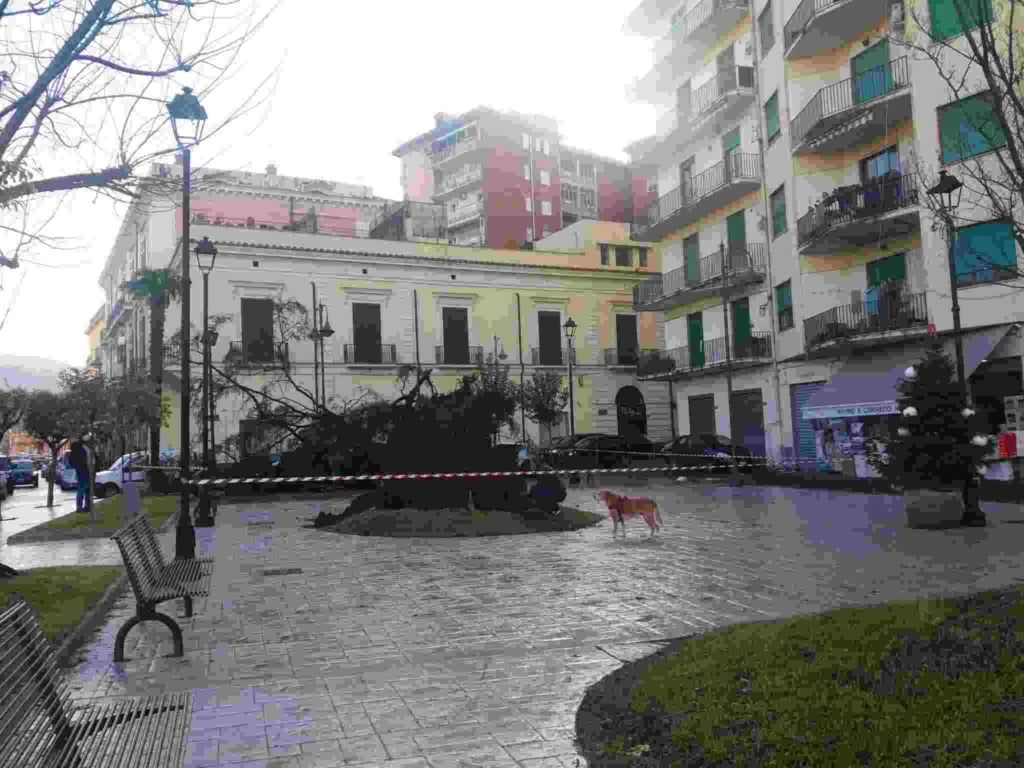 Questa mattina il grande abete appariva un guerriero sconfitto. Era inerme sul cemento di piazza Michele De Santi, slargo recentemente riqualificato al quartiere Arenula. Ieri sera è stato sradicato dalla violenza del vento che soffiava, secondo gli strumenti meteo, a oltre 80 chilometri orari. Un vortice potentissimo che ha spazzato via come un fuscello il grande albero piantato 60 anni fa e diventato simbolo di quell’angolo di Nocera Inferiore. Il caso ha voluto che in quel momento nessuno attraversasse la piazza. I rami hanno distrutto due pali dell’illuminazione e una panchina, sfiorata un’automobile che era in sosta.