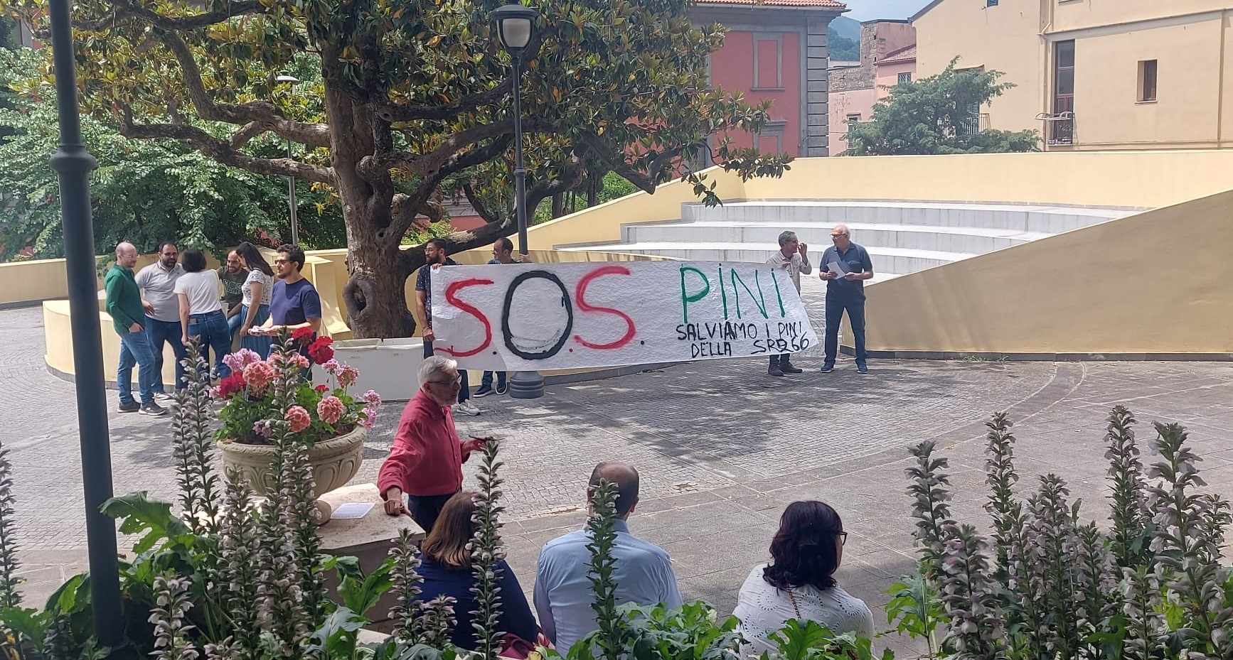 “Bisogna sospendere i lavori, modificare il progetto e salvare i due pini”. Lo ha detto Erminia Maiorino di Potere al Popolo che questa mattina ha partecipato alla manifestazione di protesta organizzata dagli attivisti del comitato “No Pip Rete a difesa del suolo” durante la cerimonia di riapertura al pubblico della villa comunale di via Solimena a Nocera Inferiore. I due alberi si trovano nel cantiere dell’area industriale di Casarzano dove sono in corso le opere di urbanizzazione. Un pino si trova quasi al centro di una strada di penetrazione nell’area industriale, l’altro, a pochi metri, rientra in un lotto assegnato ad un’azienda. Il comitato chiede che non vengano abbattuti “due magnifici pini, alberi maestosi ed antichi, certamente ultra centenari”.