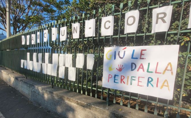 Striscioni per dire no al dimensionamento scolastico apparsi questa mattina alla scuola Sant’Anna “soluzione che sacrificherebbe le periferie”