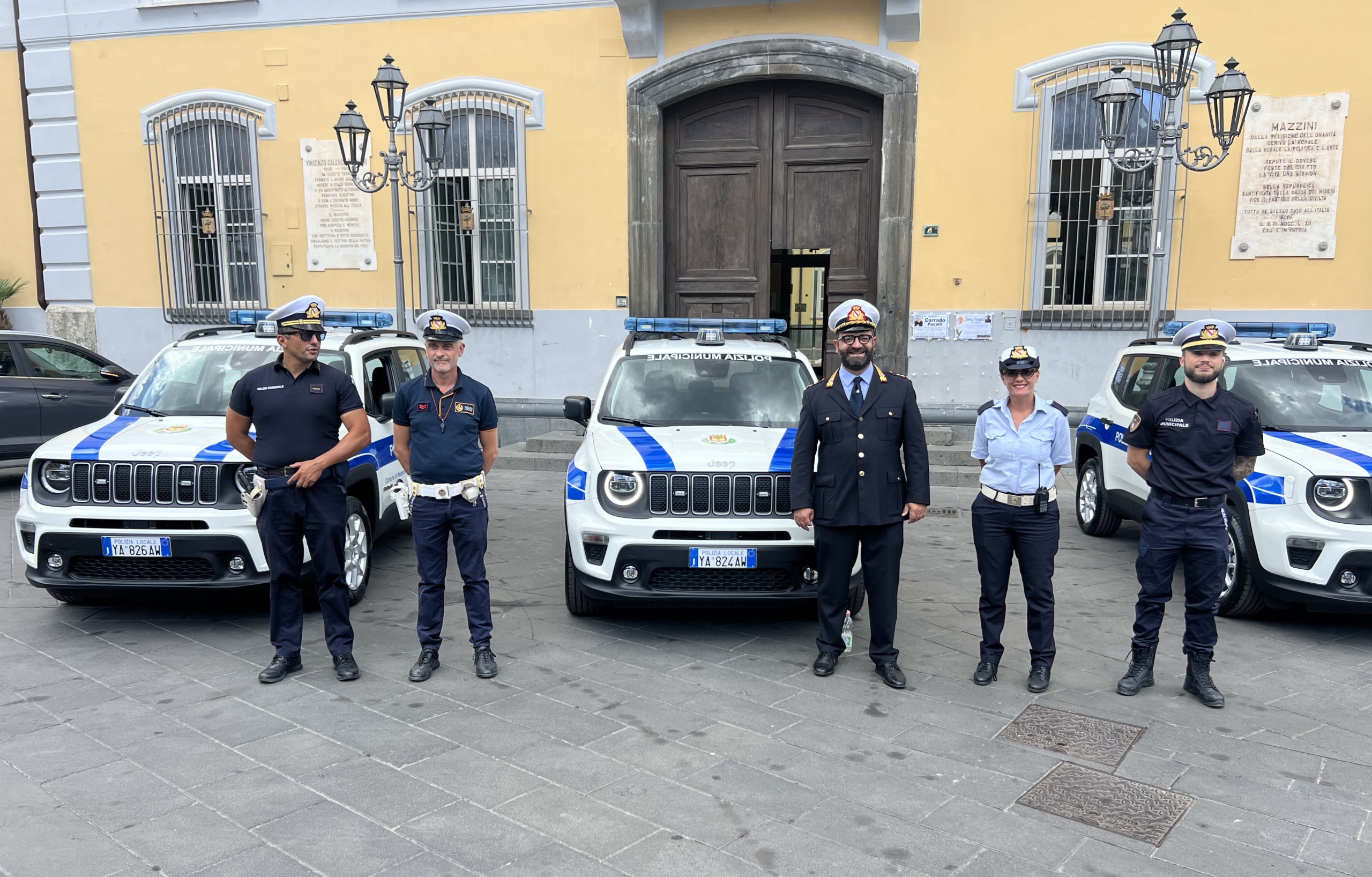 Le Jeep Renegade sono state presentate alla città questa mattina davanti al municipio. “L’amministrazione comunale – ha spiegato il sindaco Paolo De Maio – ha aderito all’Accordo Quadro Consip che ci ha consentito di noleggiare a lungo termine le auto”.