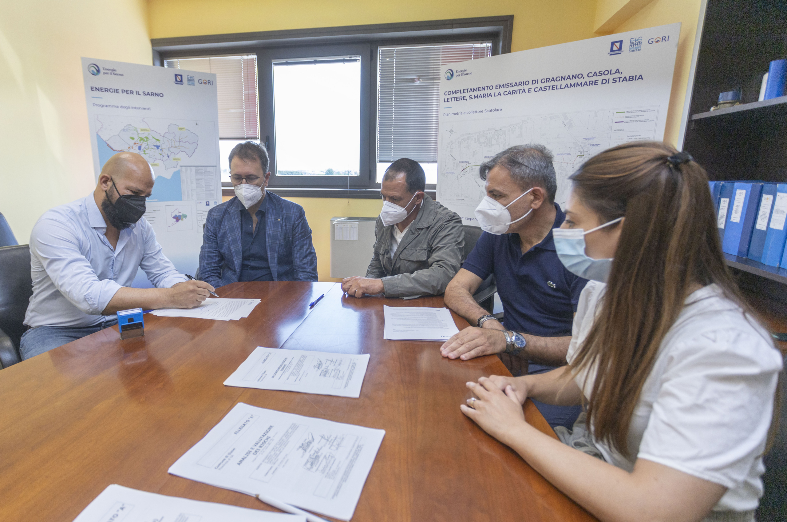 Continua l’impegno di Gori a tutela dell’ambiente e a preservare la grande risorsa del fiume Sarno e vede il progetto Energie per il Sarno, frutto della sinergia con Regione Campania ed Ente Idrico Campano, arricchirsi di un altro importante tassello. Nell’ambito dei 42 interventi che puntano a disinquinare il corso d’acqua entro il 2025, si inseriscono anche i lavori per il completamento della rete fognaria nel comune di Siano. Nei giorni scorsi, la firma del verbale di consegna da parte del direttore dei lavori, l’ingegnere Salvatore Buonavolontà, del responsabile del procedimento, l’ingegnere Domenico Tizzano, e del rappresentante dell’impresa esecutrice I.CO.NA. Società Cooperativa, aggiudicataria dell’intervento.
