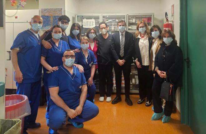 Il direttore Sergianni ha visitato i reparti di Oncoematologia, Oncologia e Chirurgia Oncologica, accolto dai primari e dal Direttore Sanitario del DEA. Ad accoglierlo il direttore DEA Nocera/Pagani/Scafati, la dottoressa Rosalba Santarpia, il Dirigente Medico di Direzione Sanitaria del presidio ospedaliero di Pagani, la dottoressa Trimiterra Giovanna, il Direttore del reparto Oncoematologia, il dottor Catello Califano, il Direttore del reparto di Oncologia, il dottore Giuseppe Di Lorenzo, il Direttore del reparto di Chirurgia Oncologica, il dottor Antonio Miro.