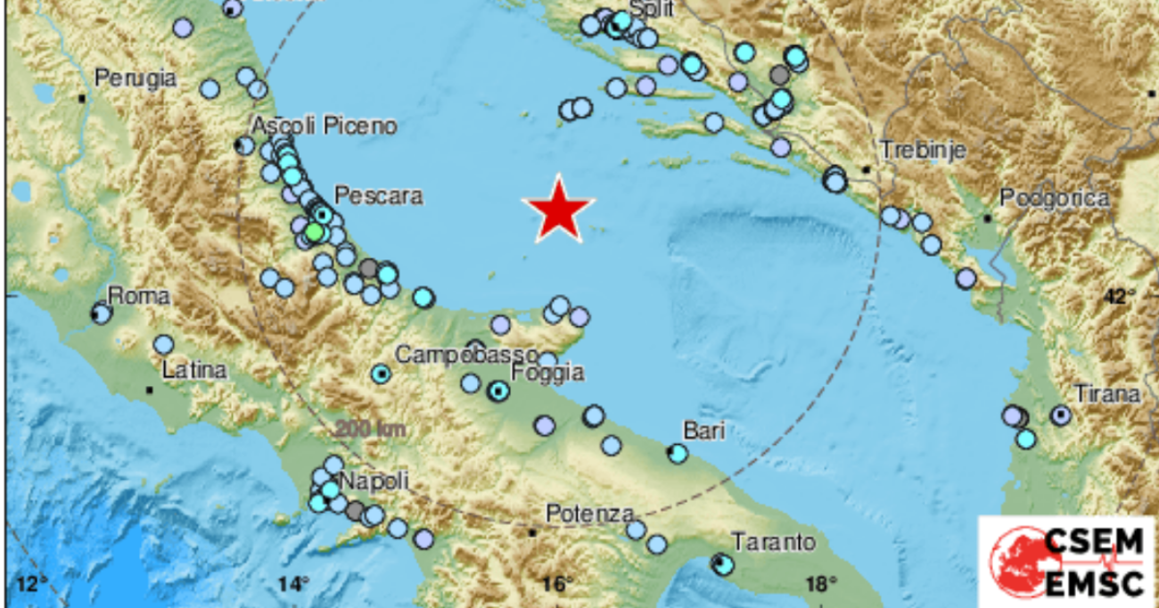Secondo il Dipartimento della Protezione Civile non si registrano danni e non sono arrivate richieste di soccorso ai vigili del fuoco. L’Istituto Nazionale di Geofisica e Vulcanologia ha specificato che il fenomeno sismico è stato alimentato da due sciami. Un primo, da cui si è scatenata la prima e violenta scossa, ha raggiunto una magnitudo di 5.6. A distanza di pochi minuti un secondo sciame, con una scossa di magnitudo 4.1 registrata nella zona dell’Adriatico centrale poco dopo le ore 15.
