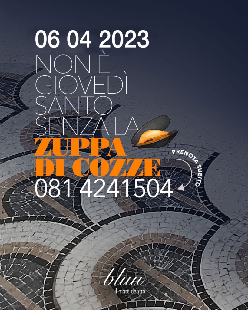 La tradizione va rispettata, soprattutto nelle feste comandate come la Pasqua. Come quella del Giovedì Santo: struscio, sepolcri e zuppa di cozze. Insomma quel sacro e profano che fa parte della pietà popolare. E il ristorante dove certamente potrete gustare il piatto nel solco della tradizione è “Bluu – il mare dentro” di Nocera Inferiore.