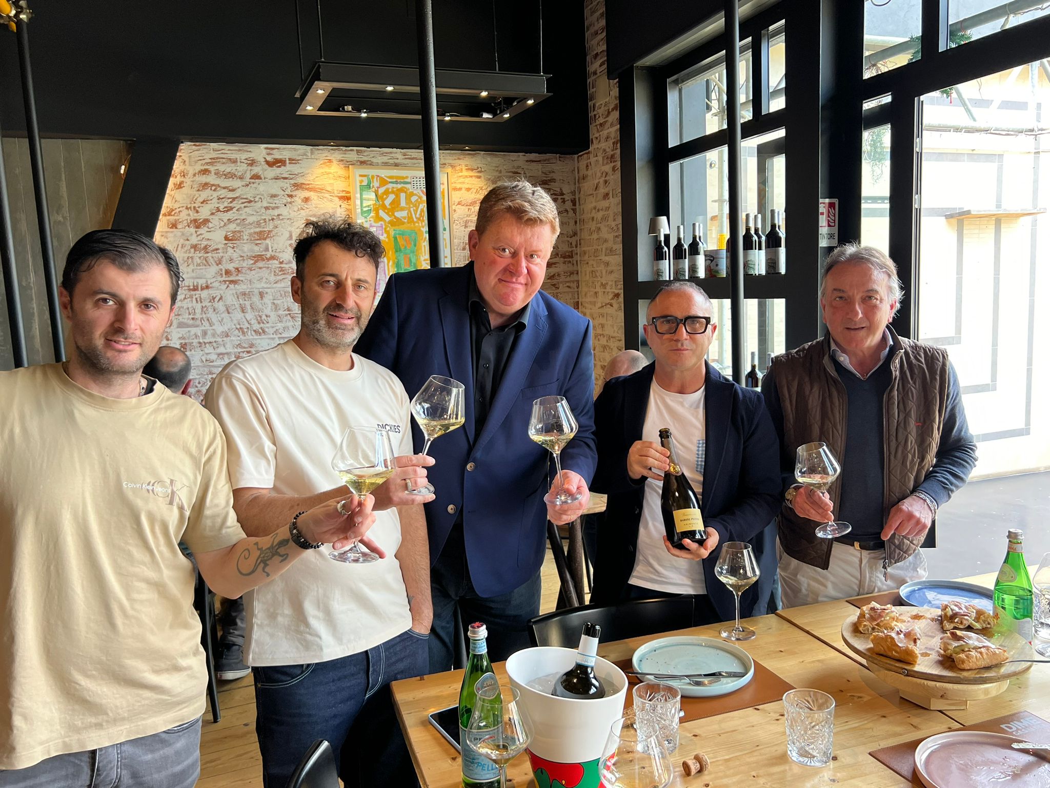 “È un’ulteriore passo in avanti, quasi obbligato, nel nostro percorso segnato da qualità e ricerca” hanno spiegato Domenico Fortino e Lorenzo Oliva. Rientra in questa visione la visita di Silvano Brescianini, presidente del Consorzio Franciacorta e manager della cantina Barone Pizzini. “Ritengo di grande importanza avere in pizzeria una buona cantina – ha detto Brescianini – anche perché la pizza ha ormai un ruolo importantissimo nelle nostre scelte pur restando un cibo leggero e gioioso che si completa anche con un bicchiere di vino”. Il manager vignaiolo ha apprezzato una pizza non ancora in menù, si chiama “emozione romana” fatta con tripla cottura (vapore frittura forno), guarnita con stracciata di bufala campana, puntarelle romane, porchetta, alici e colatura di alici. Immersione, poi, nel territorio con un classico spaghettone Vicidomini allo scarpariello.