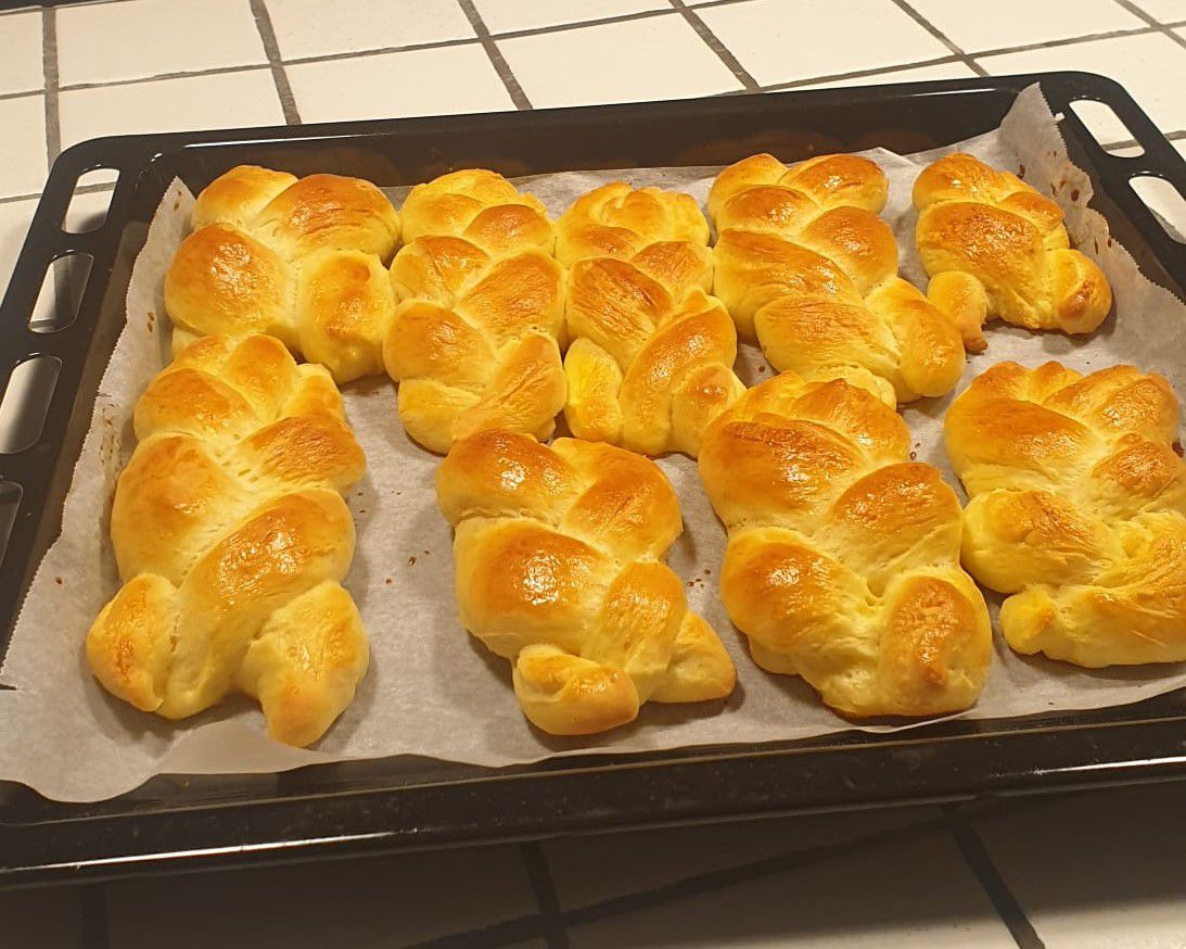 E me ne devo fare una ragione: il tempo passa inesorabilmente! Infatti, fatta eccezione per la carinissima commessa del Conad che qualche settimana fa mi ha attribuito la sua età – 7 anni in meno di quelli che ho(MAGARIIII!) – ci sarà un motivo se i ragazzi per strada mi chiamano signora e mi parlano col voi! Secondo: tra un po’ toccherà anche a me preparare la merenda per un probabile genero? NOOOO. Un estraneo che si aggira per casa e, magari, chiamandomi signora mi chiede il permesso di riaccompagnare mia figlia mezz’ora più tardi dell’orario concordato? No, tutto questo è troppo per me. Il solo pensiero mi stressa! E allora meglio mettere le mani in pasta! Preparare le trecce di pasta lievitata ma solo per la colazione di mia figlia. Per il fidanzato, si spera, ci vorrà ancora tempo (io aggiungerei volentieri: MOLTO tempo!).