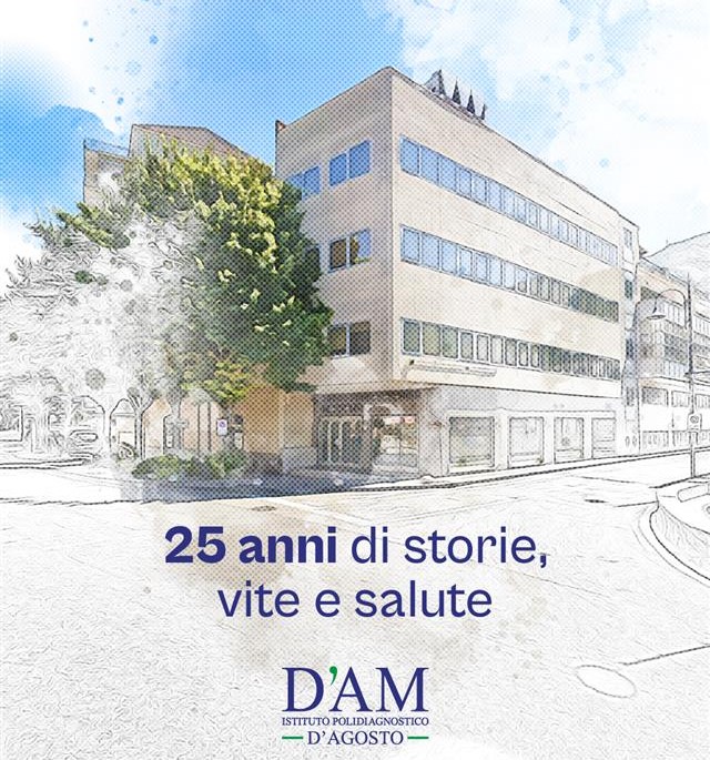 Con un bel disegno che riproduce l’edificio, l’Istituto Polidiagnostico D’Agosto ha ricordato che 25 anni fa, in quel edificio in via Atzori a Nocera Inferiore, il dottore Antonio imprimeva un’accelerazione fondamentale per trasformare il Laboratorio di analisi che si trovava in via Barbarulo, in una delle più moderne strutture di diagnosi e cura della Campania. Il progetto è stato, poi, consolidato dai figli, Amelia, Costabile e Gianfranco che continuano ad innovare tecnologia e metodologia con l’apporto di figure professionali di altissimo livello per dare risposte concrete di salute a chi si rivolge al D’Am.