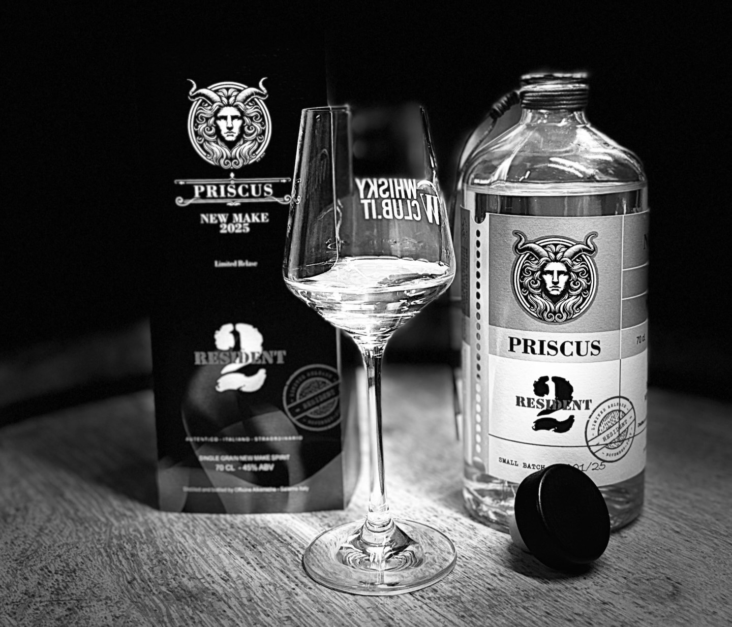 Priscus è il nome che Officine Alkemiche ha dato al suo “New Make Spirit” che fra tre anni potrà fregiarsi a pieno titolo dei l’appellativo “whisky”. Dunque dal termine latino di Priscus, “antico”, “originario”, “venerabile” che diventa la “materia prima di uno spirito futuro, ma anche come simbolo, la base su cui edificare identità e memoria liquida”. “E’ l’anima antica che alimenta l’innovazione, un gesto primordiale di distillazione che ritrova e rievoca l’origine”. Ma anche un omaggio a Prisco, primo vescovo di Nuceria e attuale patrono della città dove Officine Alkemiche è nata e vive.