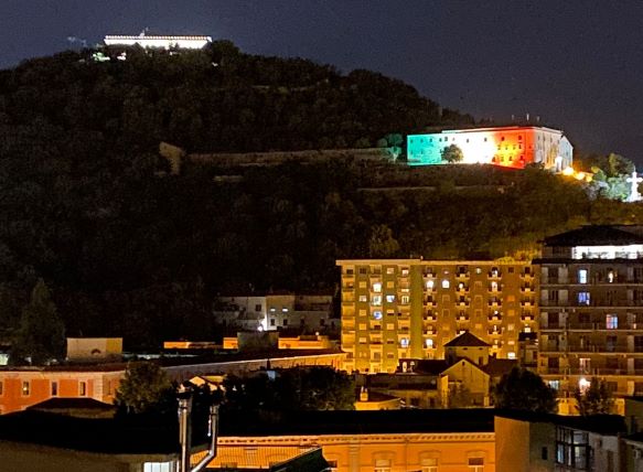 Prove tecniche di tricolore. Un fascio di luci davvero insolito questa sera ha illuminato il convento di Sant’Andrea. I fari richiamano il tricolore con il verde, il bianco e il rosso. Si è trattata della prova generale dell’accensione dei fari che dal prossimo 2 giugno illumineranno il convento che guarda a valle la città di Nocera Inferiore.