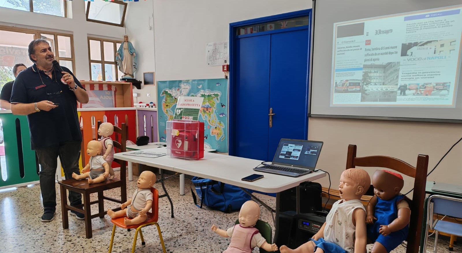 La donazione è arrivata dal dottore Salvatore Guercio Nuzio, pediatra e genitore di una bambina che frequenta la scuola. Il gesto, accolto con gratitudine e commozione da genitori, insegnanti e personale scolastico, è stato accompagnato da un incontro formativo gratuito, curato dal dottor Salvatore Stabile della Re-Heart Association, sulle manovre di disostruzione delle alte vie aeree in età neonatale e pediatrica.