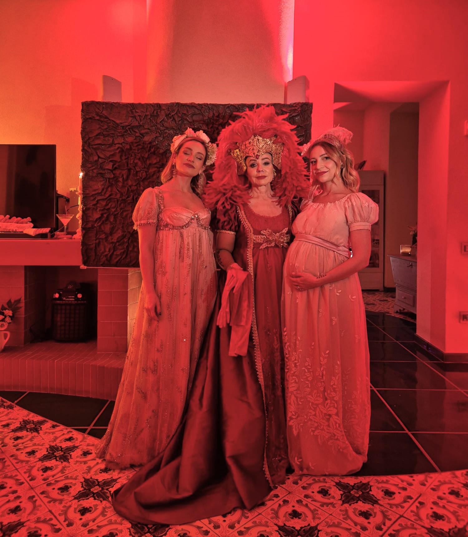 Qualcuno ha disdegnato il travestimento e ha preferito un abito pur sempre da sera impreziosito da una maschera per dare un tocco di mistero all’outfit. Purtroppo questa autrice deve ammettere di essersi divertita tanto e di non aver trovato nessuna nota stonata, grazie alla sapiente regia della padrona di casa che ha anche omaggiato gli ospiti di soffici e gustose zeppoline, una scelta che sottolinea la modernità della Regina rispetto alle ormai stantie brioche di Maria Antonietta. E allora, God bless the Queen!