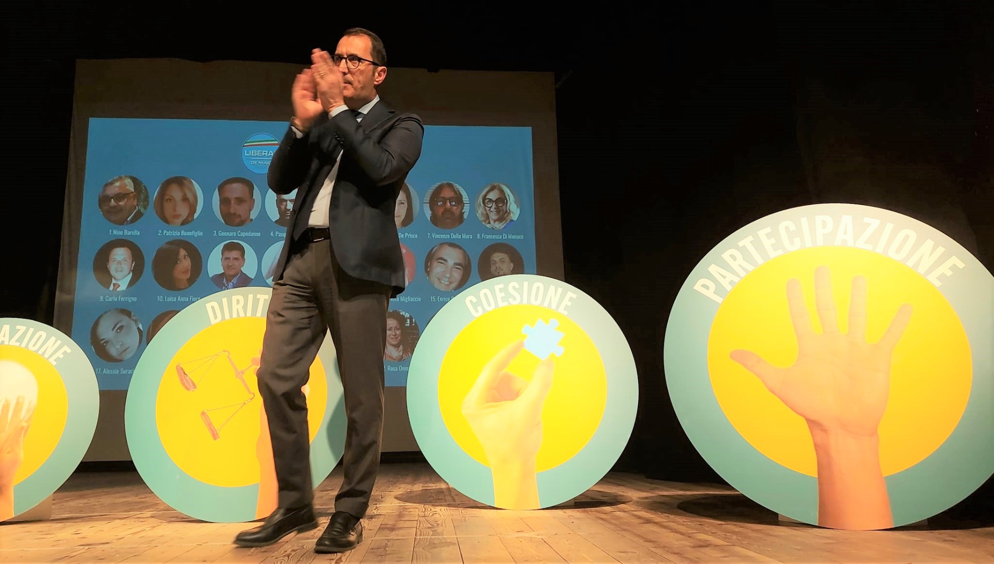 È stato Paolo De Maio ad iniziare la stagione dei comizi elettorali. Questa sera aveva dato appuntamento ai suoi sostenitori al teatro Diana, apparso subito piccolo per le persone accorse all’evento. Il candidato sindaco ha dato la precedenza ai coordinatori delle sei liste che lo affiancano (Partito Democratico, Partito Socialista Italiano, Nocera Città Solidale, Passione per Nocera, Nocera Libera e Liberal) il compito di presentare tutti i candidati al consiglio comunale.