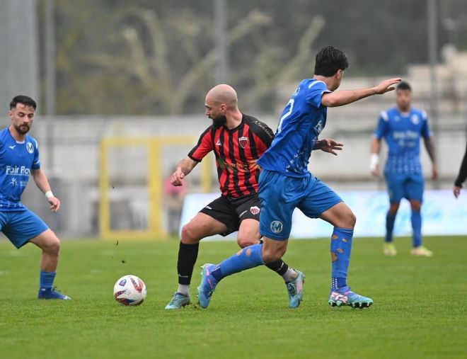 La Nocerina tenta in ogni modo di costruire trame offensive dalle parti della difesa di casa, ma l’ingresso in area per i portatori di palla rossoneri è stregata. Il Martina dalla sua gestisce agevolmente il possesso palla senza riuscire nell’intento di creare seri pericoli. All’80esimo La Monica ruba palla a Padalino, intervento dubbio del centrocampista biancazzurro, carica la conclusione deviata in angolo da un difensore molosso. Nell’ultimo dei 5 minuti di extra time concessi dal direttore di gara Felleca ha tra i piedi il colpo die tre punti ma la conclusione scoccata taglia completamente l’area piccola terminando sul fondo.