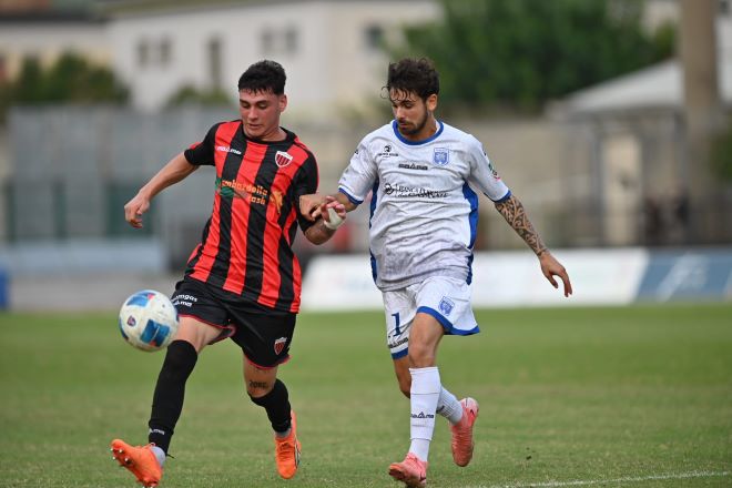 I rossoneri alla mezz’ora vanno a un passo dal raddoppio con Giannone che si rende pericoloso dalla distanza, sinistro preciso ma non letale a favorire l’intervento di Lovecchio che devia in angolo. Al minuto 38 errore di Russo in fase di disimpegno che finisce per servire Carnevale che dai 20 metri calibra il destro che termina di poco sul fondo.