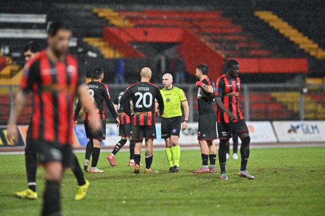 Nel posticipo della ventitreesima giornata di Serie D, la Nocerina perde in casa 2-1 contro la Palmese e vede aumentare il gap con il Trastevere, vittorioso a Cassino, di nove punti. Alle spalle dei molossi, fermi a 37 punti, sbuca il Flaminia che batte 2-0 la Lodigiani balzando dinanzi al Valmontone che crolla in casa 2-1 contro l’Ischia, ma ha ancora da recuperare la sfida col Monastir. La rete che sblocca il derby rossonero arriva dopo appena ventisette secondi con la conclusione da fuori di Calemme. Nella ripresa i rossoneri trovano il pari con Desiato (50′), equilibrio che dura appena cinque minuti quando al 55′ Puntoriere spedisce in porta la conclusione che vale il definito 2-1.