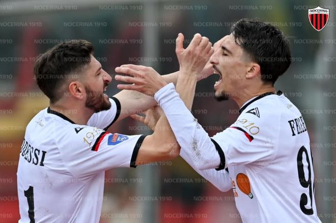 Successo fondamentale in campionato per la Nocerina che nella ventiduesima di Serie D batte 2-0 la Fidelis Andria. Allo Stadio degli Ulivi i rossoneri la vincono in inferiorità numerica, in dieci uomini per doppio giallo ai danni di Faiello, grazie alle reti siglate nel primo tempo da Addessi (35′) e da Felleca a pochi secondi dal duplice fischio. Nella ripresa i molossi fanno a sportellate in mezzo al campo, eregendo un muro invalicabile per i calciatori di mister Scaringella che cadono in casa. Con i tre punti conquistati, la Nocerina tiene il passo del Casarano che supera di misura il Fasano per 1-0 mantenendo la testa della classifica, a quota 47 punti, insieme ai rossoneri.