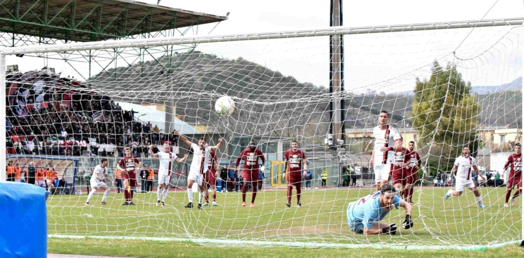 La Nocerina resta unita a tre minuti dopo, siamo al 35’, pareggia con Maletic che trasforma il calcio di rigore concesso dall’arbitro per un fallo di mano di Polichetti il colpo di testa di Caso Naturale.