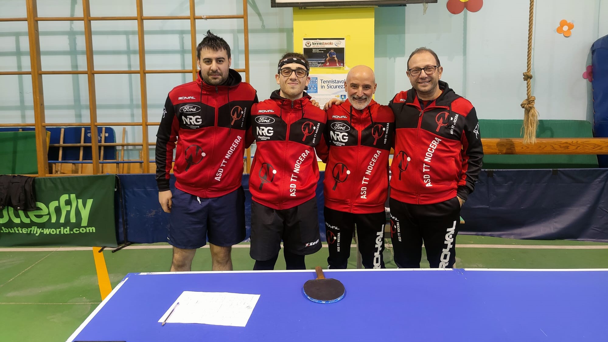 In serie D1 la Tennistavolo Nocera apre decisamente meglio il nuovo anno dando seguito alla fondamentale vittoria raccolta in casa di Avellino. Il quartetto guidato da capita Rosario Bigliardo ha portato a casa i due punti battendo agevolmente con un secco 5 – 0 il fanalino di coda Csi Tt Cava. Mattatori dell’incontro il duo Gennaro Sica e Raffaele Berritto che hanno ripagato della magnifica prestazione ottenendo due punti a testa. A firmare il trionfo Andrea Massinelli che con il punto totalizzato allunga sempre più la sua striscia d’imbattibilità in campionato, ora è a quota 19. La vittoria casalinga permette ai rossoneri di rimanere agganciati al treno della capolista Avellino, un primato che si risolverà sino all’ultima giocata.